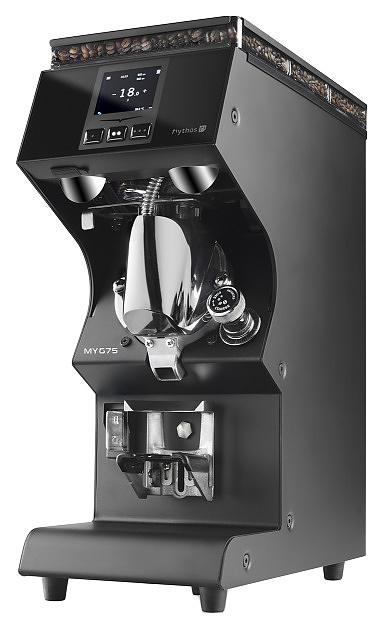 Кофемолка-дозатор Victoria Arduino Mythos MYG 75 предназначена для помола зерен кофе на предприятиях общественного питания и торговли, в гостиницах, офисах, а также домашних условиях. Модель оснащена фронтальной наклонной панелью с 3 функциональными клавишами и сенсорным жидкокристаллическим дисплеем управления и индикации (touchscreen). Корпус выполнен из нержавеющей стали с покрытием черного цвета, наклонная фронтальная панель – из черного стекла, бункер – из прозрачного пластика.