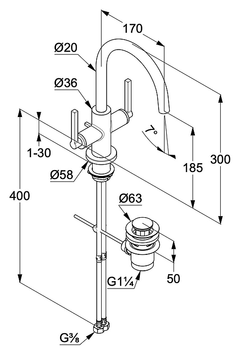 Смеситель на раковину KLUDI Nova Fonte Puristic 201180515 хром