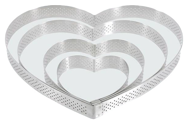 Кондитерская форма De Buyer 3099.50 используется на предприятиях общественного питания и торговли, в частных домах и квартирах для выпечки оригинальных десертов в форме сердца. Прямой край обеспечивает безупречную отделку изделий и легкую формовку. Аксессуар подходит для мытья в посудомоечной машине и выполнен из микроперфорированной нержавеющей стали. Дополнительные характеристики:
