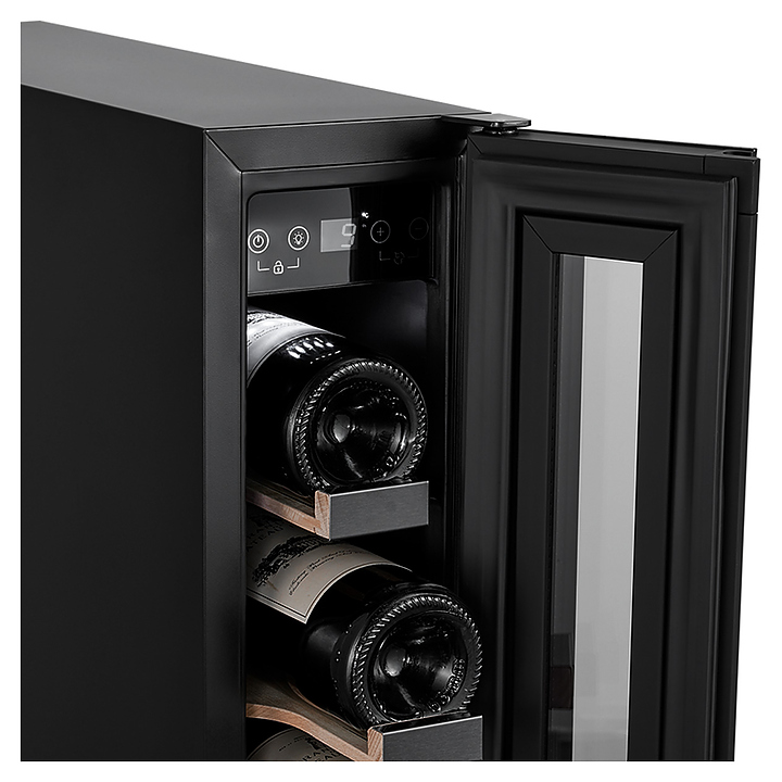 Встраиваемый винный шкаф Libhof Connoisseur CFD-46 Black предназначен для хранения при оптимальных условиях бутилированного вина различных сортов в барах, ресторанах, специализированных магазинах, подсобных складских помещениях, а также домашних условиях. Модель оснащена 5 полками, съемной цокольной вентиляционной решеткой, распашной дверью на внешних петлях, интегрированной рукояткой, прозрачным дымчатым обзорным остеклением, внешней сенсорной панелью управления и цифровым дисплеем. Корпус выполнен из металла с антикоррозийным покрытием черного цвета, полки - из массива бука с хромированной окантовкой фасада. Особенности: