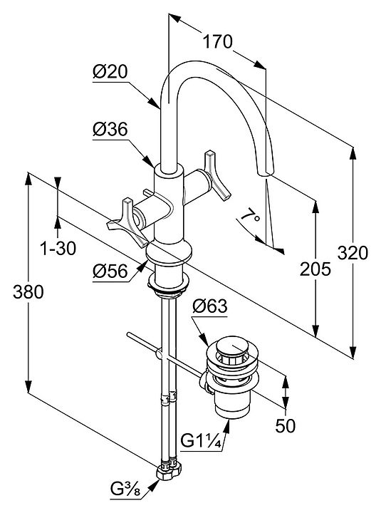 Смеситель для раковины KLUDI Nova Fonte 201180539 с донным клапаном, хром
