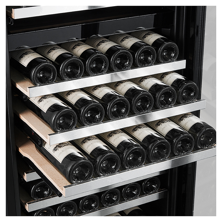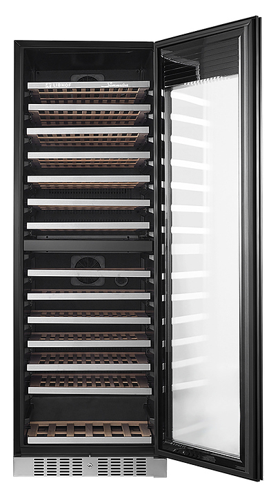 Встраиваемый винный шкаф Libhof Sommelier SRD-164 white предназначен для хранения при оптимальных условиях бутилированного вина различных сортов в барах, ресторанах, специализированных магазинах, подсобных складских помещениях, а также домашних условиях. Модель оснащена холодильной камерой с 2 независимыми температурными зонами, съемной цокольной вентиляционной решеткой, запираемой на ключ распашной дверью на внешних петлях со скрытыми ручками, прозрачным обзорным остеклением, внешней сенсорной панелью управления и цифровым дисплеем. Корпус выполнен из металла с антикоррозийным покрытием, полки - из массива буковой древесины с хромированной окантовкой фасада. В комплект поставки входят 14 полок с направляющими для размещения бутылок, 2 ключа от дверного замка и инструкция по эксплуатации. Особенности: