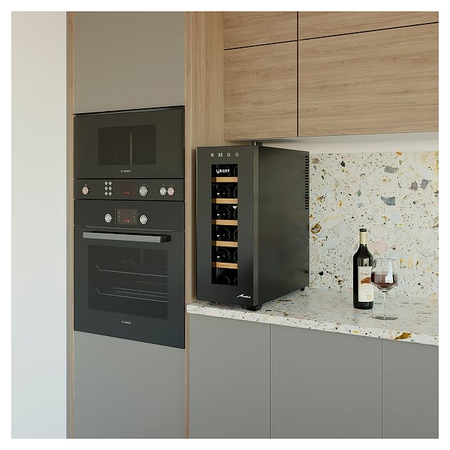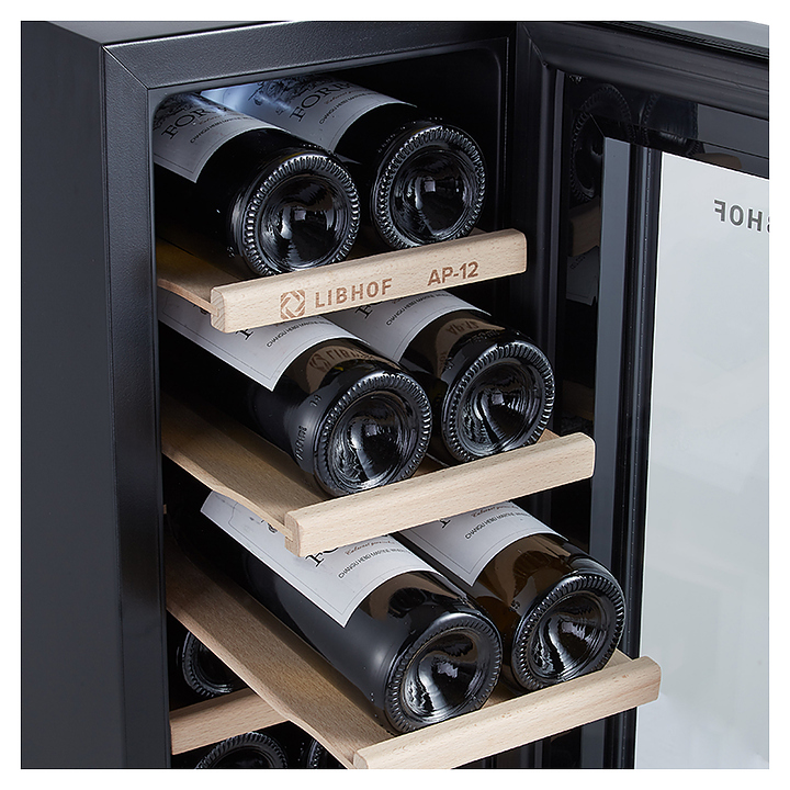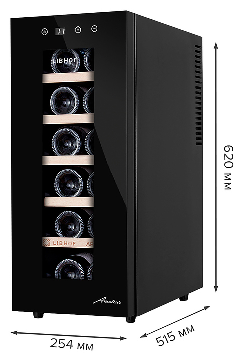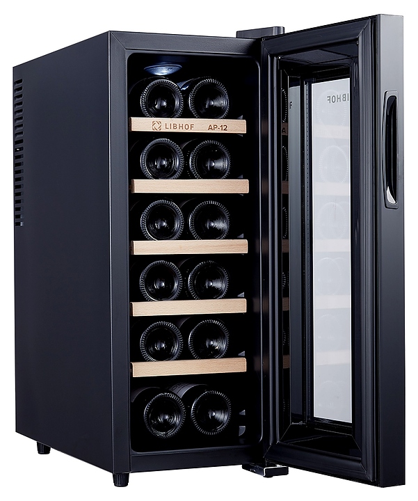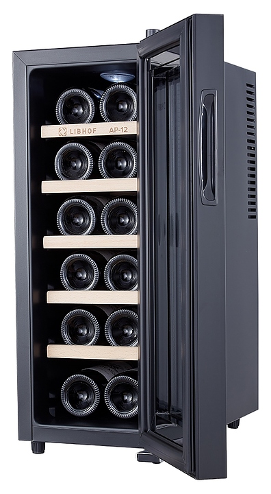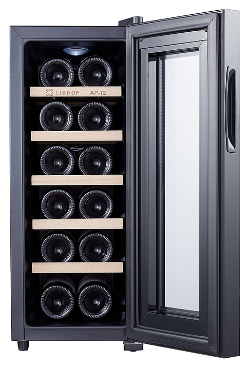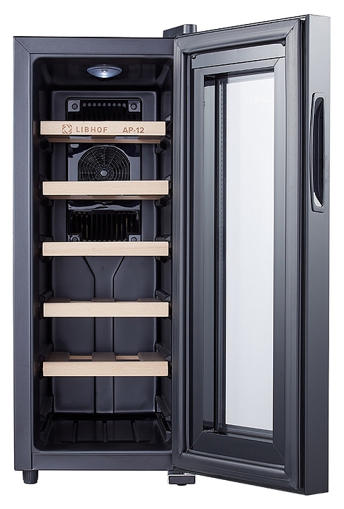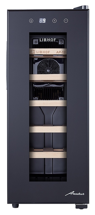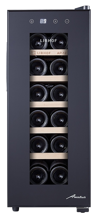 Винный шкаф Libhof Amateur AP-12 предназначен для хранения белых и красных вин, требующих дозревания перед употреблением, а также уже готовых к сервировке в барах, ресторанах, специализированных магазинах, подсобных складских помещениях или в домашних условиях. Модель оснащена холодильной камерой с 5 полками, распашной дверью на внешних петлях с ручкой, прозрачным обзорным остеклением, дисплеем и цифровым термометром на двери. Корпус выполнен из металла, полки - из массива дерева. Особенности: