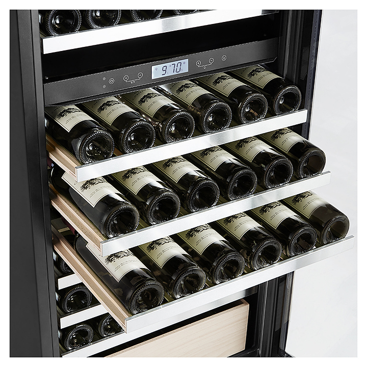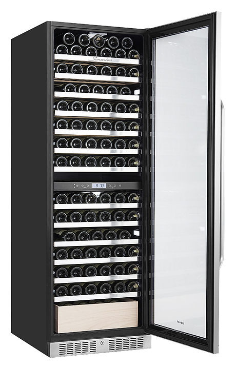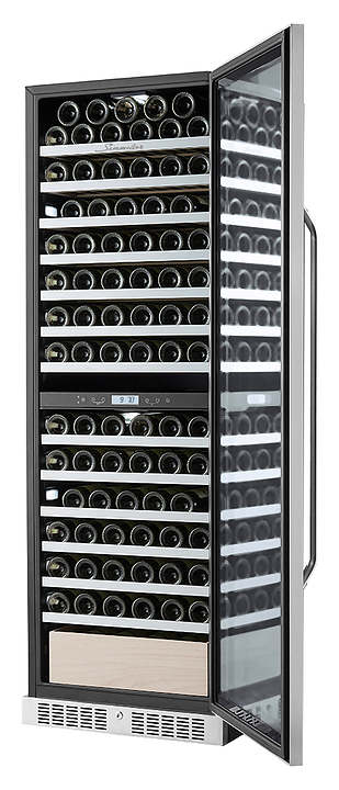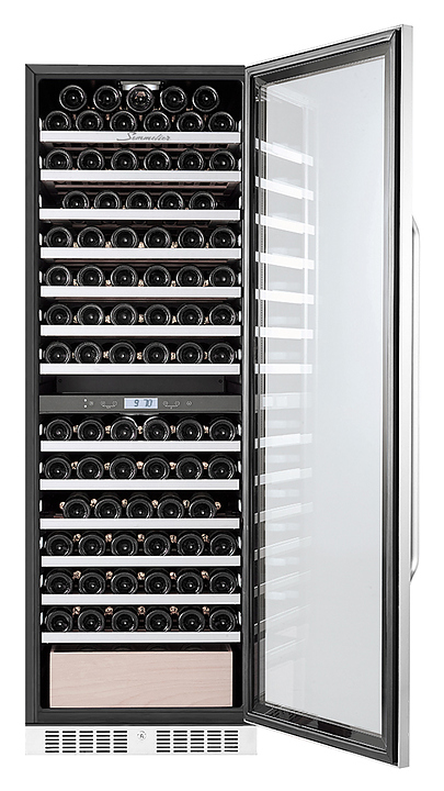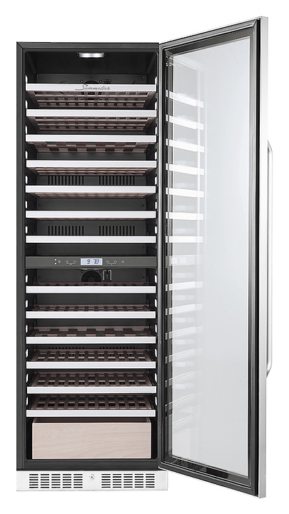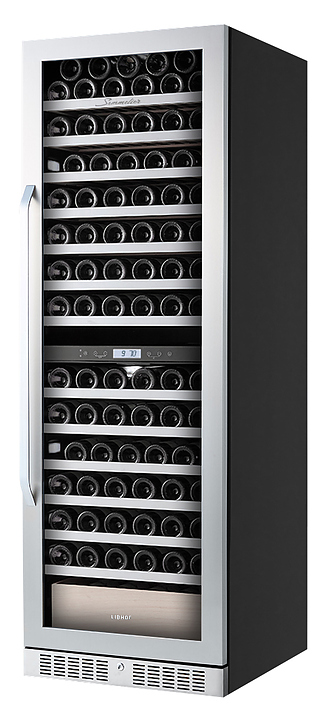 Винный шкаф Libhof Sommelier SED-161 предназначен для охлаждения вина перед подачей, длительного хранения или созревания винной коллекции в барах, ресторанах, специализированных магазинах, подсобных складских помещениях или в домашних условиях. Модель оснащена холодильной камерой с 2 температурными зонами, демонстрационной полкой, ящиком, 11 съемными полками, запираемой на ключ безшовной хромированной дверью на внешних петлях, прозрачным обзорным остеклением, сенсорной панелью управления в средней части камеры и дисплеем с гигрометром. Корпус выполнен из металла, полки - из натурального бука с хромированным торцом. Особенности: