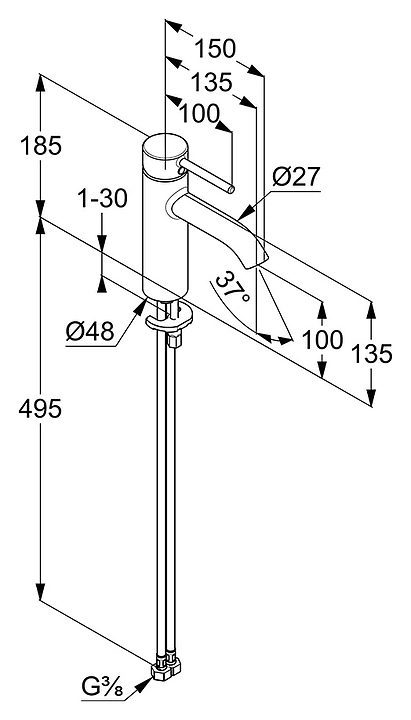 Смеситель для раковины KLUDI Bozz 382820576 хром