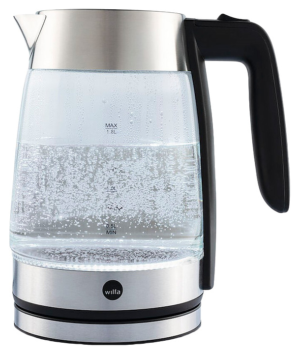 Электрический чайник Wilfa WKG-2200S предназначен для быстрого подогрева воды в офисах и домашних условиях. Модель оснащена устойчивыми круглыми подставкой и основанием, кабелем питания с вилкой и удобной вертикальной рукояткой. Корпус выполнен из высококачественной нержавеющей стали с сатинированной поверхностью и боросиликатного стекла, рукоятка – из черного ударопрочного пластика. Особенности: