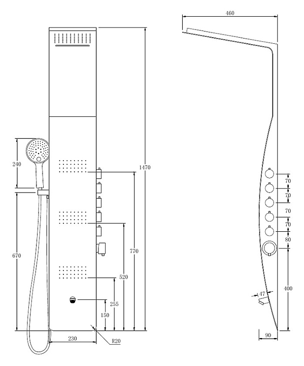 Душевая панель Taliente ТА-G-A04Bb+s используется в ванных комнатах. Модель оснащена гидромассажем, прямоугольным верхним душем и круглой лейкой. Изделие выполнено из алюминия, который отличается прочностью, долговечностью и устойчивостью к коррозии. Особенности: