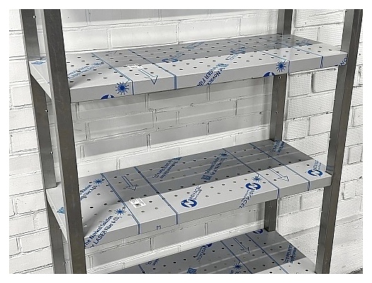 Кухонный стеллаж Restoinox СТПП-7/4 предназначен для хранения посуды, инвентаря и продуктов, не требующих специального температурного режима, на предприятиях общественного питания и торговли. Модель оснащена 4 регулируемыми по высоте перфорированными полками, усиленными ребрами жесткости, и регулируемыми по высоте пластиковыми опорами. Разборный каркас выполнен из квадратной трубы 40х40 мм нержавеющей стали AISI 430, полки и ребра жесткости - из нержавеющей стали AISI 430. Дополнительные характеристики: