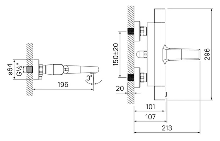 Смеситель для ванны и душа настенный термостат IDDIS Uniterm UNISB02i74WA