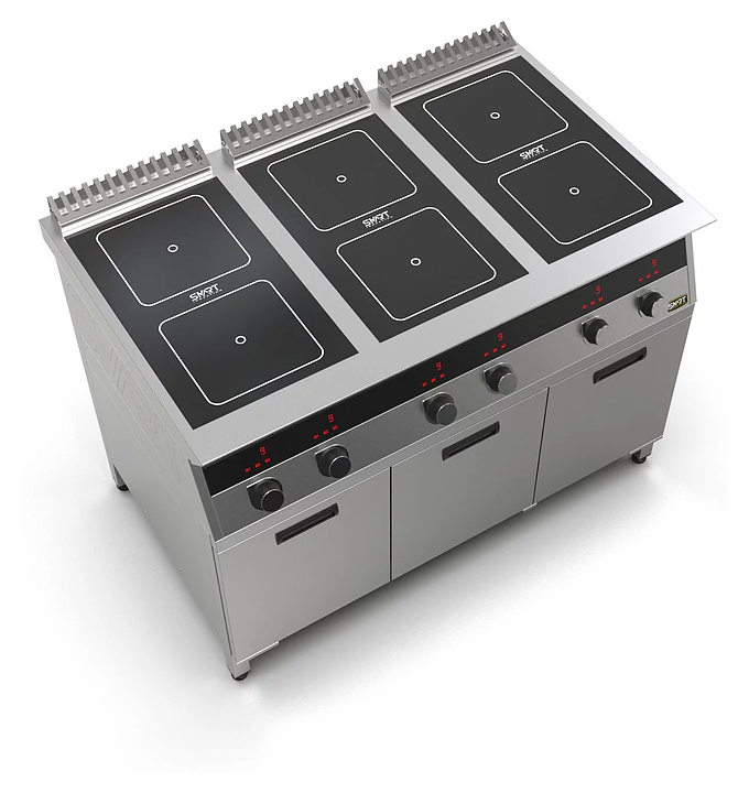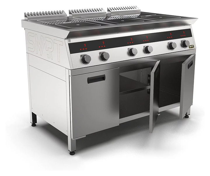 Индукционная плита SMART INDUCTION C96-5N предназначена для приготовления и быстрого разогрева блюд на предприятиях общественного питания и торговли. Модель оснащена электронно-механической панелью управления с индикацией, съемным жировым фильтром для отделения жира и влаги от поступающего внутрь аппарата воздуха и регулируемыми по высоте ножками. Корпус, столешница и воздуховод выполнены из нержавеющей стали AISI430, рабочая поверхность - из стеклокерамики, передняя панель - из нержавеющей стали. Особенности: