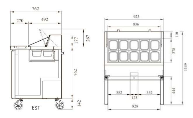 Холодильный стол Turbo air EST-36 серии E line используется на предприятиях общественного питания и торговли для кратковременного хранения предварительно охлажденных пищевых продуктов и приготовления из них сэндвичей. Модель оснащена встоенным холодильным агрегатом, холодильной камерой с распашными дверьми и столешницей с боковыми фиксаторами для разделочной доски. Вертикально ориентированный корпус за исключением задней стенки, фронтальная облицовка дверей, столешница и крышка выполнены из высококачественной нержавеющей стали SUS439 производства Posco, полка – из стального прутка с виниловым покрытием, разделочная доска – из термостойкого полиэтилена, термоизоляция – из пенополиуретана высокой плотности, испаритель с антикоррозийным покрытием. В комплект поставки входят 2 решетчатые полки и разделочная доска. Особенности: