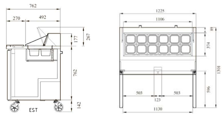 Холодильный стол Turbo air EST-48 серии E line используется на предприятиях общественного питания и торговли для кратковременного хранения предварительно охлажденных пищевых продуктов и приготовления из них сэндвичей. Модель оснащена встоенным холодильным агрегатом, холодильной камерой с распашными дверьми и столешницей с боковыми фиксаторами для разделочной доски. Вертикально ориентированный корпус за исключением задней стенки, фронтальная облицовка дверей, столешница и крышка выполнены из высококачественной нержавеющей стали SUS439 производства Posco, полка – из стального прутка с виниловым покрытием, разделочная доска – из термостойкого полиэтилена, термоизоляция – из пенополиуретана высокой плотности, испаритель с антикоррозийным покрытием. В комплект поставки входят 2 решетчатые полки и разделочная доска. Особенности: