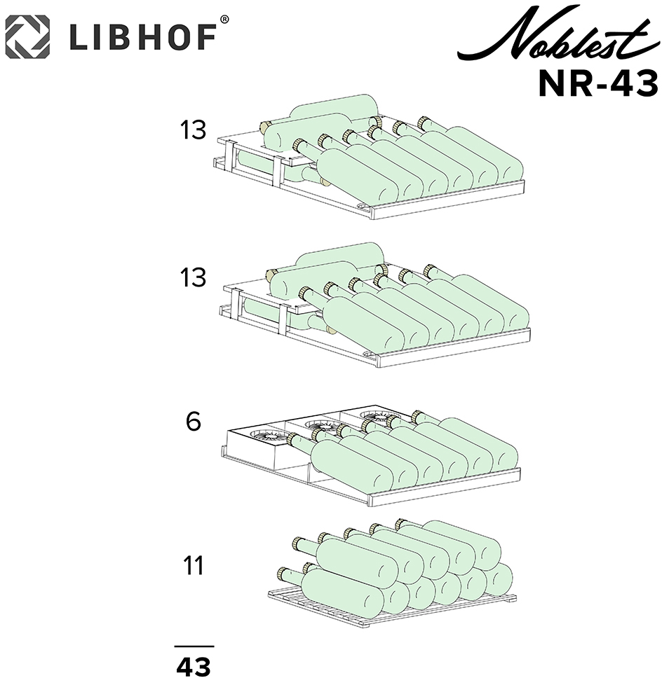 Винный шкаф Libhof Noblest NR-43 предназначен для хранения при оптимальных условиях бутилированного вина различных сортов в барах, ресторанах, специализированных магазинах, подсобных складских помещениях, а также в домашних условиях. Модель оснащена холодильной камерой с 2 демонстрационными полками, полкой с ванночкой и укороченной полкой, распашной дверью на внутренних петлях с замком, прозрачным обзорным стеклом и сенсорной панелью управления. Корпус выполнен из американского дуба, полки - из массива бука. В комплект поставки входят емкость для долива воды и механический замок с комплектом ключей. Особенности: