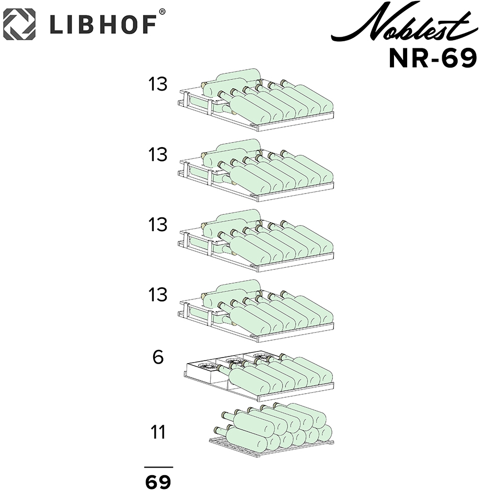 Винный шкаф Libhof Noblest NR-69 предназначен для хранения при оптимальных условиях бутилированного вина различных сортов в барах, ресторанах, специализированных магазинах, подсобных складских помещениях, а также в домашних условиях. Модель оснащена холодильной камерой с 4 демонстрационными полками, полкой с ванночкой и укороченной полкой, распашной дверью на внутренних петлях с замком, прозрачным обзорным стеклом и сенсорной панелью управления с дисплеем. Корпус выполнен из американского дуба, полки - из массива бука. В комплект поставки входят емкость для долива воды и механический замок с комплектом ключей. Особенности: