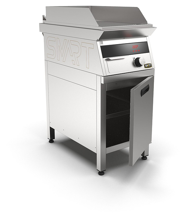 Индукционный гриль SMART INDUCTION G72-RB предназначен для приготовления мясных, рыбных и овощных блюд на предприятиях общественного питания и торговли. Модель оснащена электронно-механической панелью управления с цифровой индикацией и сенсорными кнопками, съемным жировым фильтром для отделения жира и влаги от поступающего внутрь аппарата воздуха, ящиком для сбора жира и регулируемыми по высоте ножками. Корпус и столешница выполнены из нержавеющей стали AISI430, рабочая поверхность и передняя панель - из нержавеющей стали. Особенности: