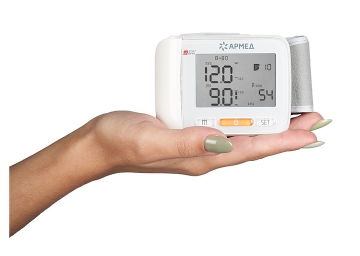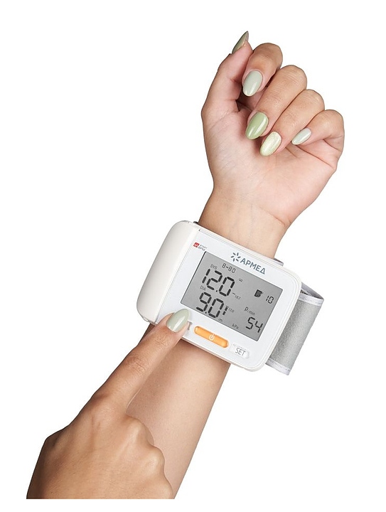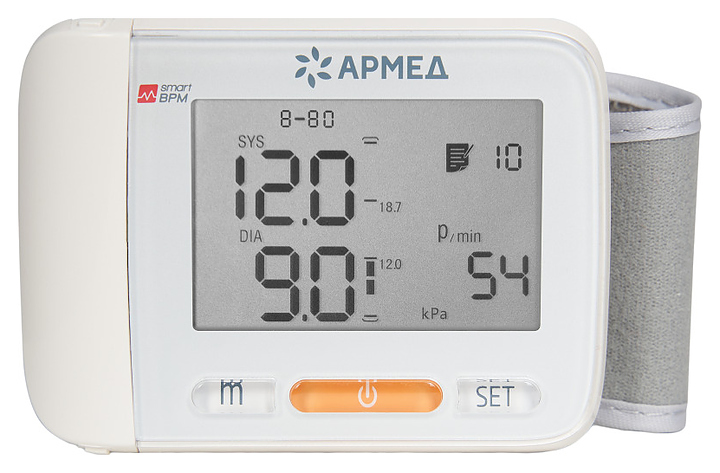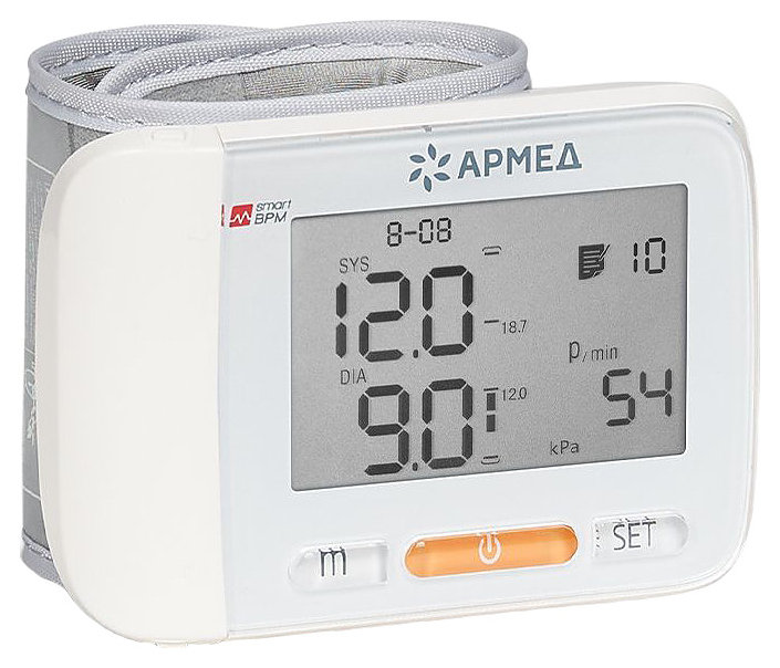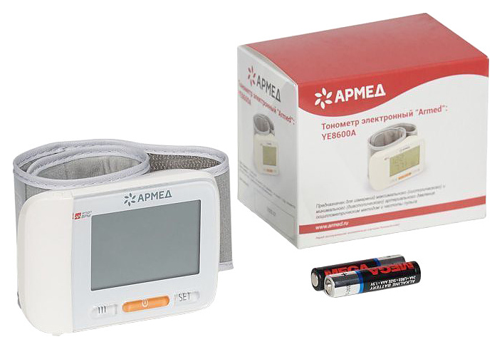 Электронный тонометр Армед YE8600A предназначен для измерений максимального (систолического) и минимального (диастолического) артериального давления осциллометрическим методом, а также частоты пульса. Принцип работы основан на анализе параметров сигнала пульсовой волны пациента при снижении давления воздуха в компрессионной манжете. Модель оснащена отсеком для батарей с крышкой, кнопочной панелью управления и большим информативным жидкокристаллическим дисплеем. Корпус выполнен из ударопрочного пластика белого цвета, манжета – из мягкого гипоаллергенного синтетического материала, упаковка – картонная коробка. В комплект поставки входят компрессионная манжета, заводская упаковка и инструкция по эксплуатации. Особенности: