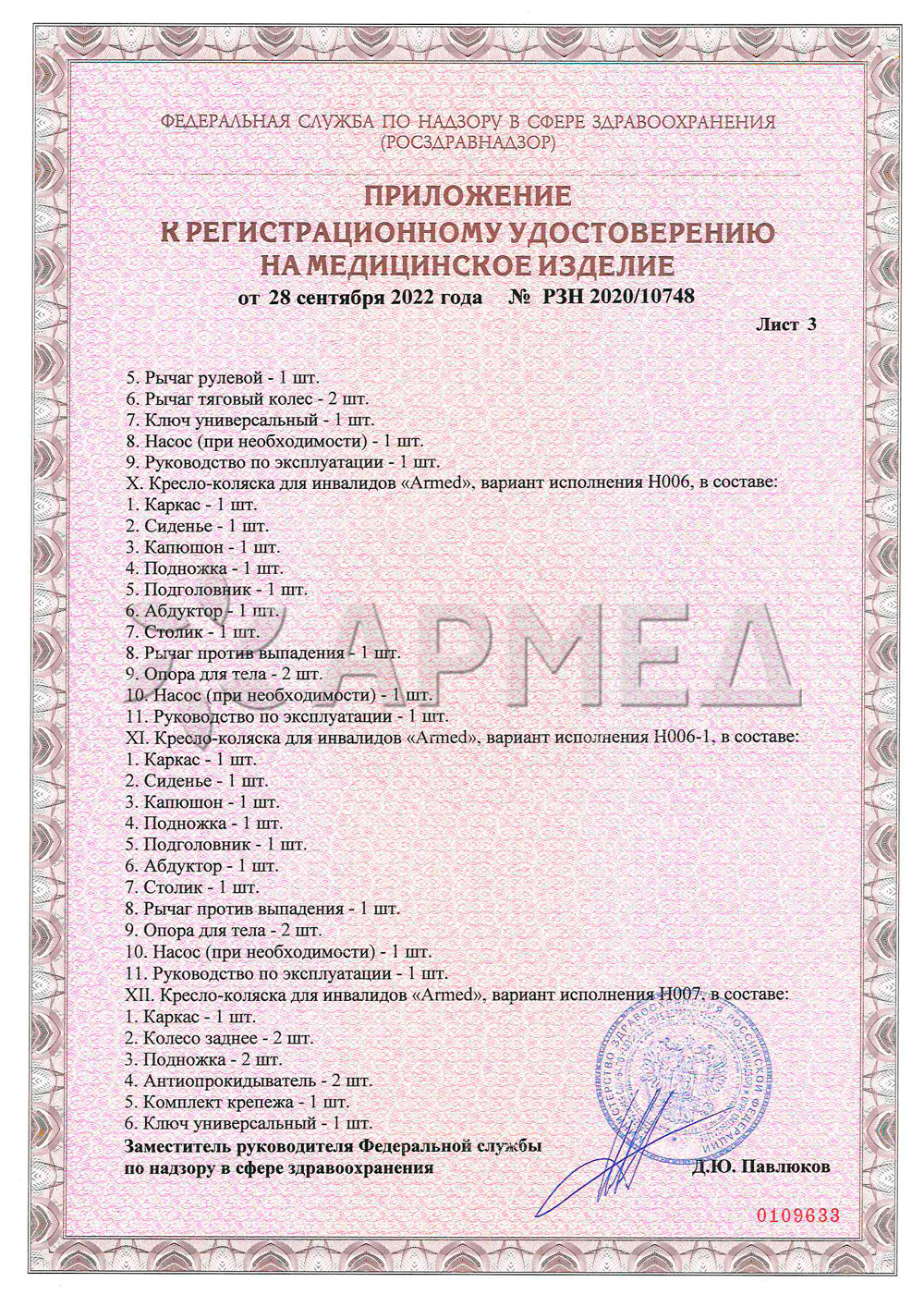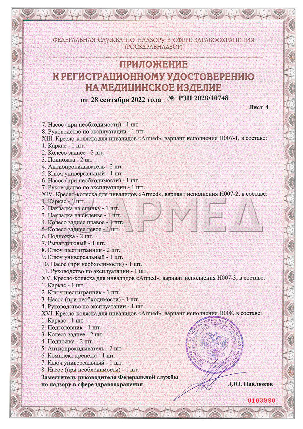 Кресло-коляска Армед H007 предназначено для передвижения в сидячем положении людей с повреждениями опорно-двигательной системы и ослабленных из-за болезни пациентов в различных помещениях, а также на улице во время недолгих прогулок по дорожкам с твердым покрытием. Модель оснащена 2 небыстросъемными задними колесами с цельнолитыми шинами на металлических ободах со спицами, 2 кольцеобразными рукоятками для самостоятельного перемещения пользователя, 2 цельнолитыми поворотными фронтальными колесами и 2 ведущими рукоятками для сопровождающего. Каркас выполнен из металлического сплава с антикоррозийным покрытием серой и черной порошковой краской, спинка, сиденье и ремни – из устойчивой к растяжению водоотталкивающей нейлоновой ткани черного цвета, подножки и рукоятки – из полимеров черного цвета, упаковка – картонная коробка. В комплект поставки входят универсальный ключ, набор крепежа, заводская упаковка и инструкция по эксплуатации. Особенности: