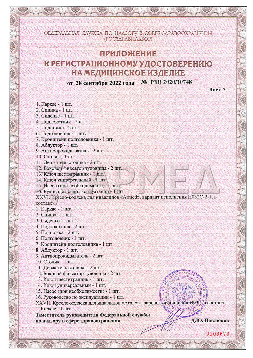 Кресло-коляска Армед H035 предназначено для передвижения в сидячем положении людей с повреждениями опорно-двигательной системы и ослабленных из-за болезни пациентов преимущественно на улице во время прогулок, а также в различных помещениях при необходимости. Модель оснащена 2 небыстросъемными задними колесами с пневматическими шинами на металлических ободах со спицами, 2 кольцеобразными рукоятками для самостоятельного перемещения пользователя, 2 цельнолитыми поворотными фронтальными колесами и 2 складными ведущими рукоятками для сопровождающего. Каркас выполнен из стали с антикоррозийным покрытием синей и черной порошковой краской, спинка, сиденье и ремни – из устойчивой к растяжению водоотталкивающей нейлоновой ткани черного цвета, подножки и рукоятки – из полимеров черного цвета, упаковка – картонная коробка. В комплект поставки входят универсальный ключ, набор крепежа, заводская упаковка и инструкция по эксплуатации. Особенности: