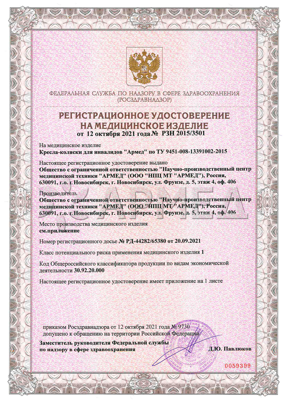 Кресло-коляска Армед Н035 (цельнолитые задние шины 18")