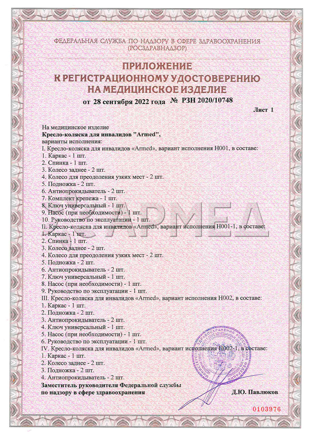 Кресло-коляска Армед H002 предназначено для передвижения в сидячем положении людей с повреждениями опорно-двигательной системы и ослабленных из-за болезни пациентов в различных помещениях, а также на улице во время недолгих прогулок по дорожкам с твердым покрытием. Модель оснащена 2 небыстросъемными задними колесами с цельнолитыми шинами на металлических ободах со спицами, 2 кольцеобразными рукоятками для самостоятельного перемещения пользователя, 2 цельнолитыми поворотными фронтальными колесами и 2 складными ведущими рукоятками для сопровождающего. Каркас выполнен из алюминия и стали с антикоррозийным покрытием черной порошковой краской, приводные рукоятки – из металлического сплава с серебристой поверхностью, спинка и сиденье – из устойчивого к растяжению мягкого кожзаменителя черного цвета, накладки на подлокотниках и икроножные опоры – из поролона с обивкой черным кожзаменителем, подножки и рукоятки – из полимеров черного цвета, упаковка – картонная коробка. В комплект поставки входят универсальный ключ, набор крепежа, заводская упаковка и инструкция по эксплуатации. Особенности: