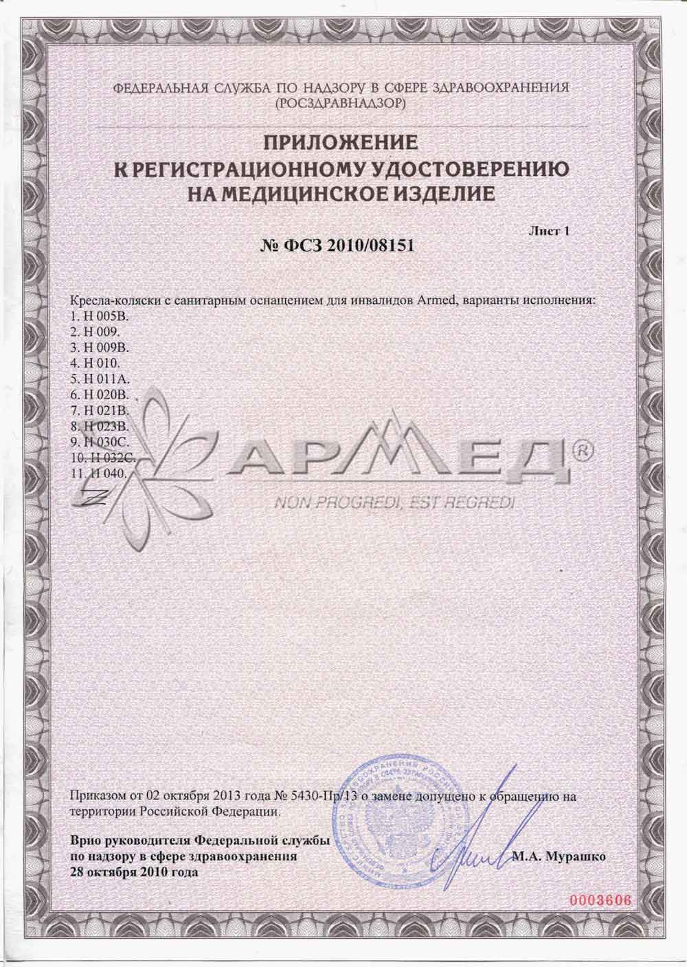 Кресло-каталка с санитарным оснащением Армед H 005B