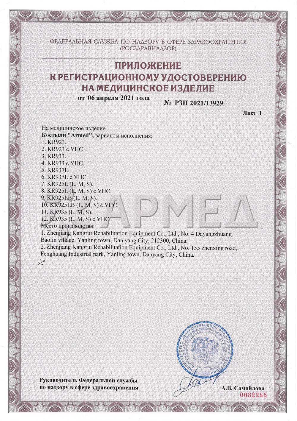 Костыль Армед KR925L (M) с противоскользящим устройством