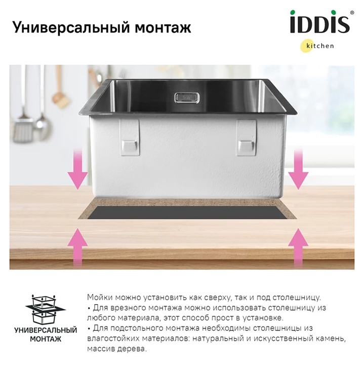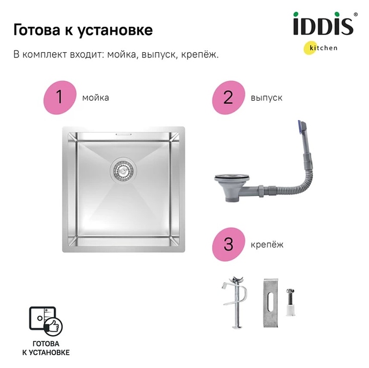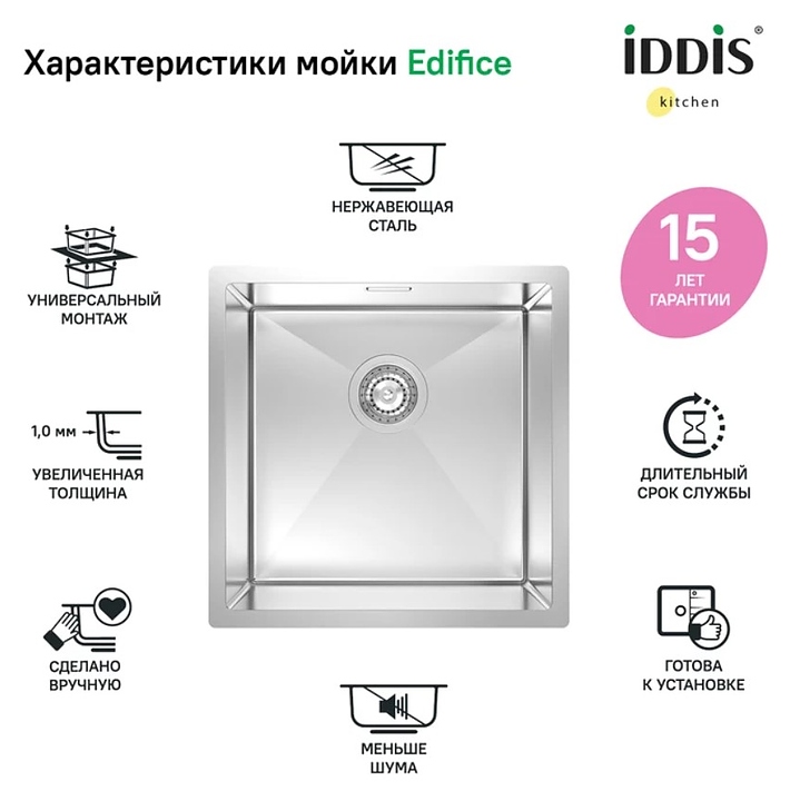 Мойка кухонная IDDIS Edifice EDI44S0i77 44х44 см