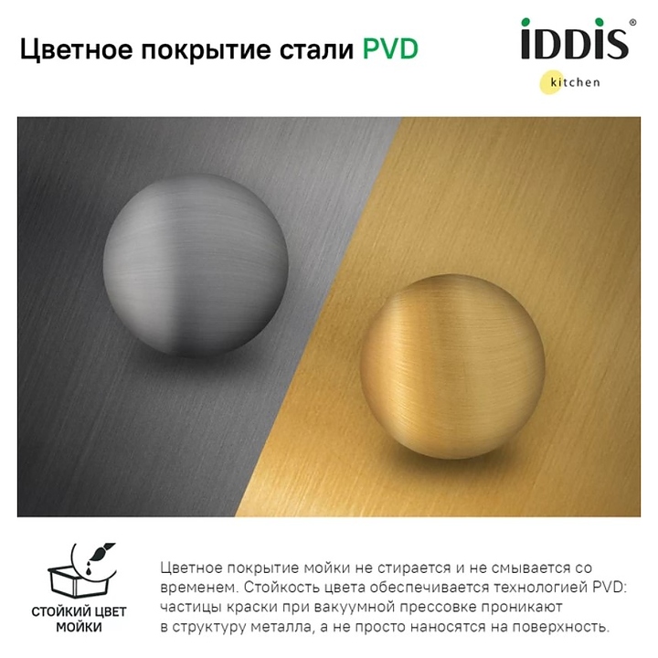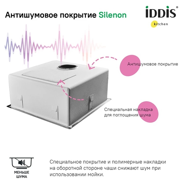 Мойка IDDIS Edifice EDI44S0i77 предназначена для рационального планирования рабочего места на кухне. Модель оснащена вместительной чашей и усиленными бортиками, что позволяет ставить в мойку даже большую и тяжелую посуду. Изделие выполнено нержавеющей стали с PVD-покрытием, которое придает мойке привлекательный вид, делает ее более долговечной и устойчивой к появлению царапин, а также способствует стеканию воды со стенок чаши, а специальное антишумовое покрытие Silenon и полимерные накладки на оборотной стороне чаши снижают шум при использовании мойки. В комплект поставки входят выпуск и крепеж. Особенности: