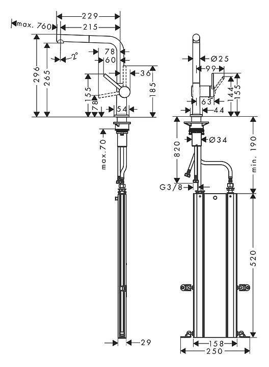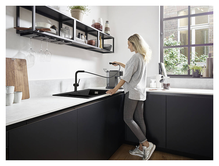 Смеситель Hansgrohe Talis M54 72809670 предназначен для подачи горячей и холодной воды в кухонных помещениях. Модель оснащена вытяжным изливом и керамическим картриджем, обеспечивающим плавный ход рычага смесителя, контроль и точность при выборе напора и температуры воды. Короб sBox гарантирует тихое, плавное и безопасное перемещение шланга в кухонном шкафу и под столешницей. Система QuickClean позволяет удалить известковый налет быстро и просто. В комплект поставки входят соединительные шланги и крепежный набор. Особенности: