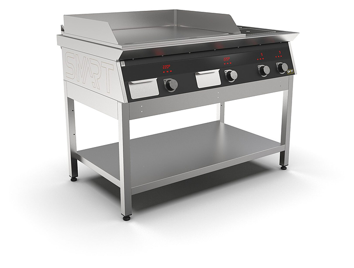 Комбинированная индукционная плита SMART INDUCTION K76-5PPKB предназначена для приготовления и быстрого разогрева блюд на предприятиях общественного питания и торговли. Модель оснащена электронно-механической панелью управления с цифровой индикацией и сенсорными кнопками, 3 съемными жировыми фильтрами для отделения жира и влаги от поступающего внутрь аппарата воздуха, 2 ящиками для сбора жира и регулируемыми по высоте ножками. Корпус и столешница выполнены из нержавеющей стали AISI430, рабочая поверхность плиты - из стеклокерамики, рабочая поверхность гриля - из нержавеющей стали, передняя панель имеет стойкое полимерное покрытие черного цвета. Особенности: