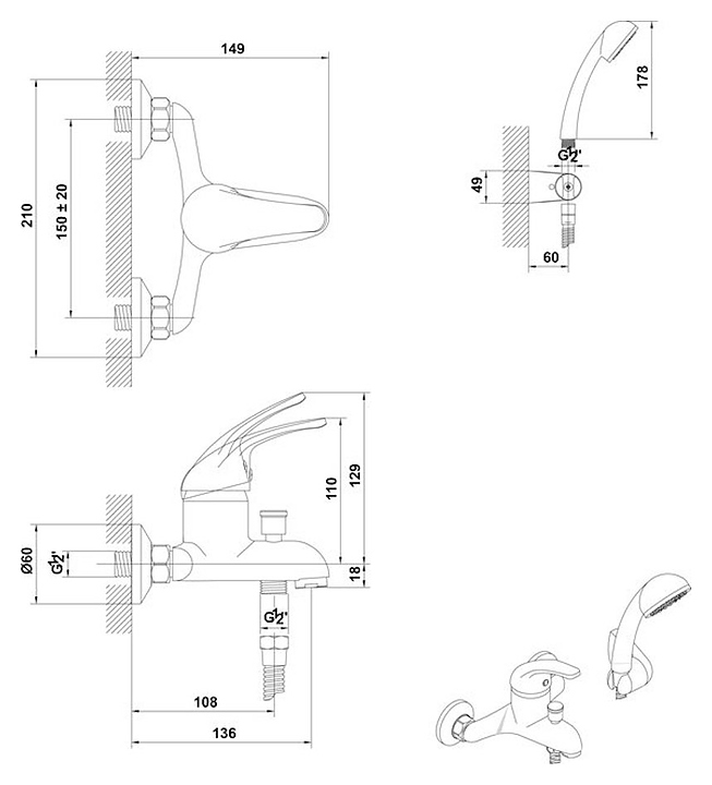 Смеситель для ванны с душем Gala Alea 39360 хром