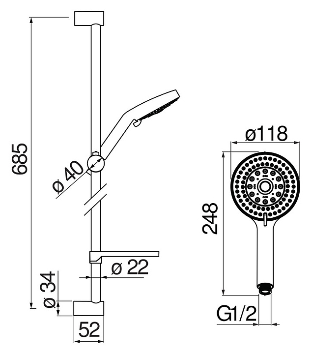 Душевая стойка NOBILI AD140/66CR выполнена в современном стиле и используется в ванных комнатах. Модель оснащена душевой лейкой круглой формы и полкой-мыльницей. Комплектация: