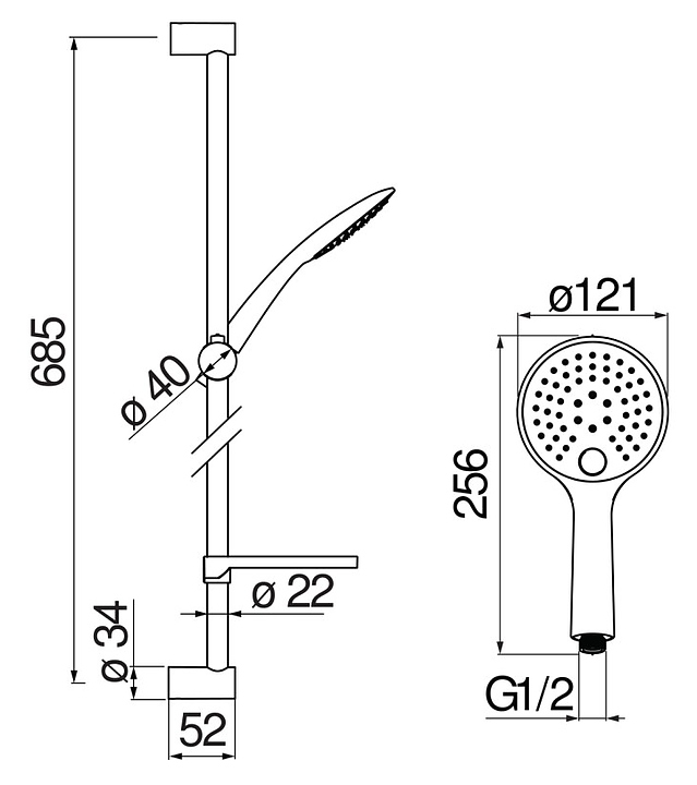 Душевая стойка NOBILI AD140/67CR выполнена в современном стиле и используется в ванных комнатах. Модель оснащена душевой лейкой круглой формы и полкой-мыльницей. Комплектация:
