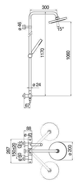 Душевая система NOBILI VELIS VE125030/50FLP используется в ванных комнатах. Модель оснащена термостатическим картриджем, обеспечивающим поддержание заданной температуры и силы потока, независимо от того, как в системе меняется давление. Изделие выполнено из высококачественной латуни, которая отличается прочностью, долговечностью и устойчивостью к перепадам температур, душевая лейка - из ABS-пластика. Комплектация: