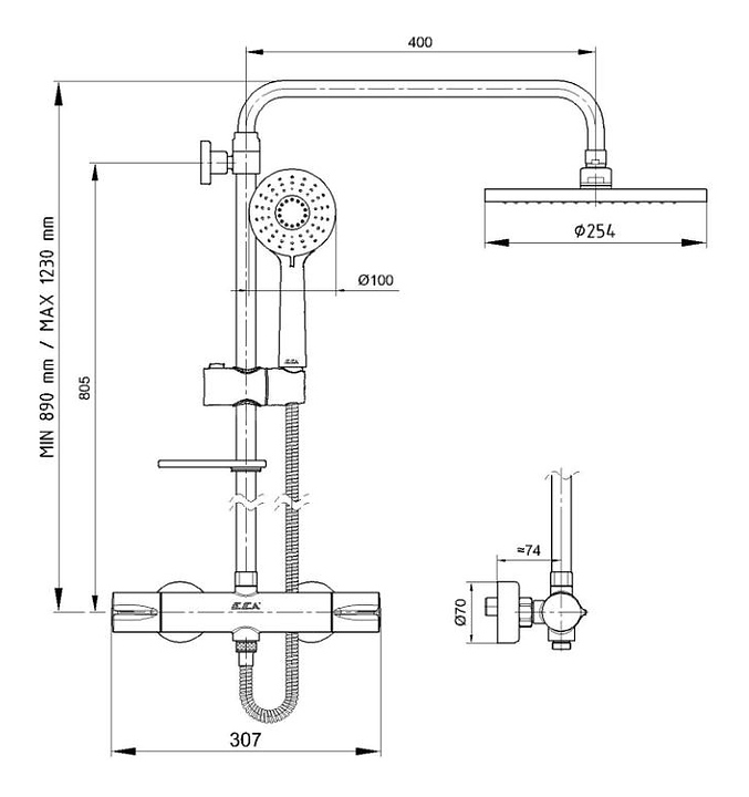 Душевая стойка E.С.А. 102102489EX используется в ванных комнатах. Модель оснащена круглыми верхним душем и лейкой. Термостатический картридж обеспечивает поступление воды заданной температуры. Изделие выполнено из латуни, которая отличается прочностью, долговечностью и устойчивостью к перепадам температуры. Дополнительные характеристики: