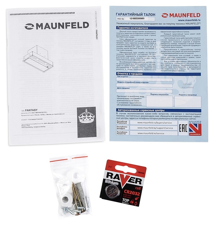 В комплект поставки входят пульт дистанционного управления, набор монтажных креплений и инструкция по эксплуатации.