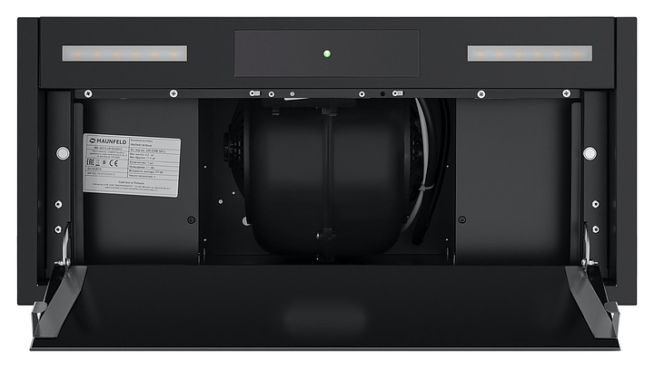 Встраиваемая кухонная вытяжка Maunfeld Fantasy 60 предназначена для очистки воздуха от продуктов горения, копоти и запахов в процессе приготовления пищи путем принудительной вентиляции в домашних условиях. Модель оснащена электродвигателем Fime (Италия), 2 прямоугольными светодиодными светильниками, сенсорной панелью управления с подсветкой клавиш и цифровым дисплеем. Корпус прибора выполнен из высококачественной стали с термостойким покрытием черного цвета, фильтр – из алюминия, корпус пульта – из пластика черного цвета.