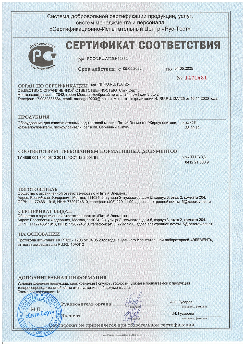 Пескоуловитель Пятый Элемент Стандарт ПЭ-0,5-25