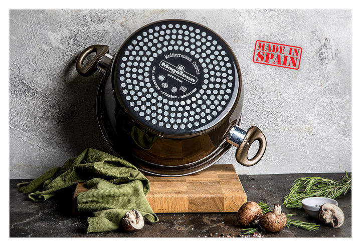 Кастрюля Vitrinor Champagne 26 используется на предприятиях общественного питания и торговли, а также в домашних условиях для приготовления широкого спектра блюд на любых типах варочных поверхностей, включая индукционные. Модель оснащена стеклянной крышкой с ободком из нержавеющей стали и отверстием для выпуска пара. Изделие выполнено из стали c ферромагнитными свойствами с трехслойным антипригарным покрытием, не содержащим PFOA, внешнее покрытие - двухслойная стеклоэмаль, обожженная при температуре 820 °С, цвета шампань, ручки - из бакелита. Особенности:
