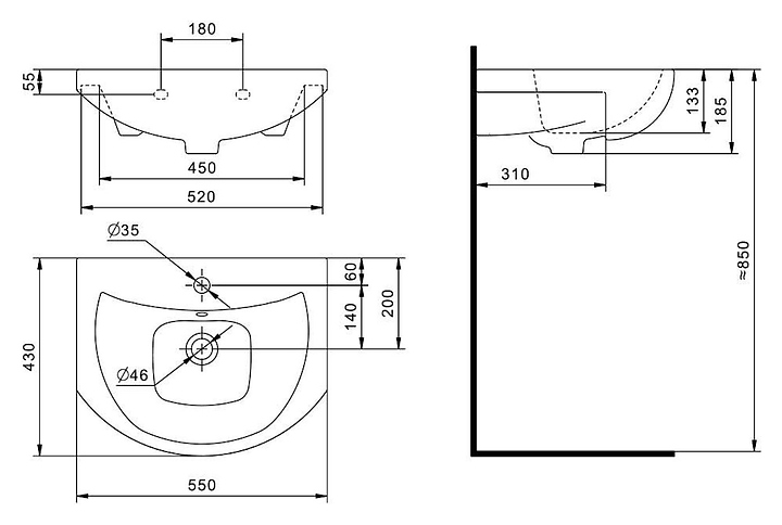 Раковина Santek Балтика 55 1WH501702 выполнена в современном стиле. Встраиваемая конструкция позволяет экономить место в ванной комнате для хранения туалетных принадлежностей. Модель оснащена широкой задней поверхностью, на которой можно размещать необходимые аксессуары для ежедневного использования. Изделие выполнено из санфарфора, который обладает повышенной прочностью и устойчивостью к негативным внешним факторам, а так же долгое время сохраняет идеальную белизну и не впитывает запахи и грязь. В комплект поставки входит хромированное кольцо. Смеситель и слив-перелив в комплект поставки не входят и приобретаются отдельно. Особенности:
