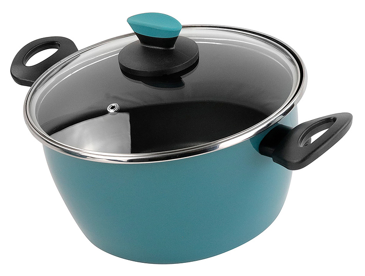 Кастрюля Vitrinor Lotus 20 используется на предприятиях общественного питания и торговли, а также в домашних условиях для приготовления широкого спектра блюд на любых типах варочных поверхностей, включая индукционные. Модель оснащена стеклянной крышкой с ободком из нержавеющей стали и отверстием для выпуска пара. Изделие выполнено из стали c ферромагнитными свойствами с двухслойным антипригарным покрытием, не содержащим PFOA, внешнее покрытие - двухслойная стеклоэмаль, обожженная при температуре 820 °С, бирюзового цвета, ручки - из бакелита. Особенности: