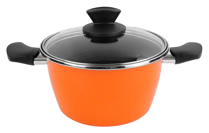 Кастрюля Vitrinor Valencia 21 24 используется на предприятиях общественного питания и торговли, а также в домашних условиях для приготовления широкого спектра блюд на любых типах варочных поверхностей, включая индукционные. Модель оснащена стеклянной крышкой с ободком из нержавеющей стали и отверстием для выпуска пара. Изделие выполнено из стали c ферромагнитными свойствами с двухслойным антипригарным покрытием, не содержащим PFOA, внешнее покрытие - двухслойная стеклоэмаль, обожженная при температуре 820 °С, оранжевого цвета, ручки - из бакелита. Особенности: