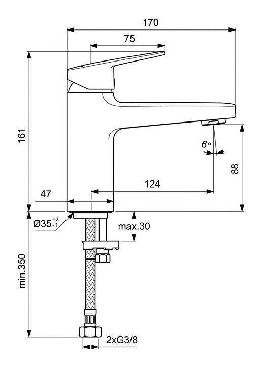 Смеситель для раковины Ideal Standard CERAPLAN BD222AA предназначен для подачи горячей и холодной воды в ванных помещениях. Керамический картридж обеспечивает плавный ход рычага смесителя, контроль и точность при выборе напора и температуры воды. Модель оснащена функцией ограничения максимальной температуры горячей воды для предотвращения ожогов и системой облегченного монтажа. Аэратор насыщает водный поток воздухом и создает струю воды без брызг. Изделие выполнено из высококачественной латуни, которая отличается прочностью, долговечностью и устойчивостью к перепадам температур, рукоятка - из металла. Дополнительные характеристики: