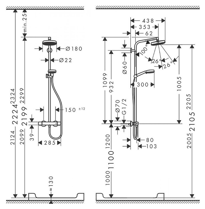 Комплект душевой термостат Hansgrohe Crometta 27264400