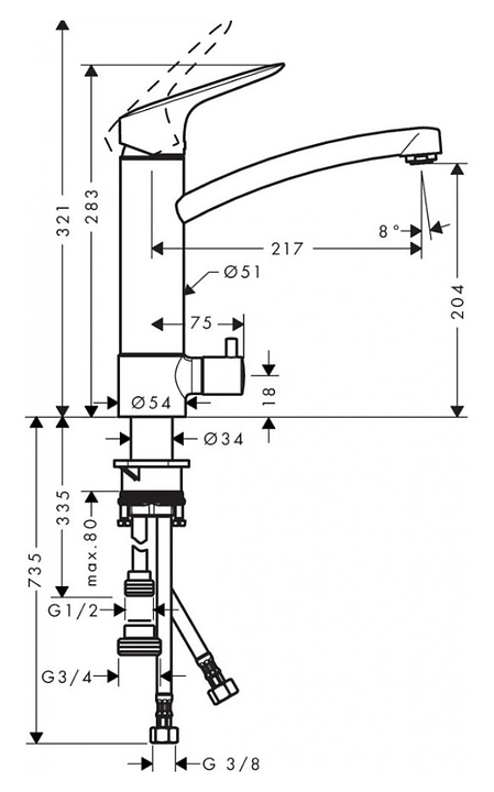 Смеситель для кухни Hansgrohe Logis 71834000 с запорным вентилем для посудомоечной машины