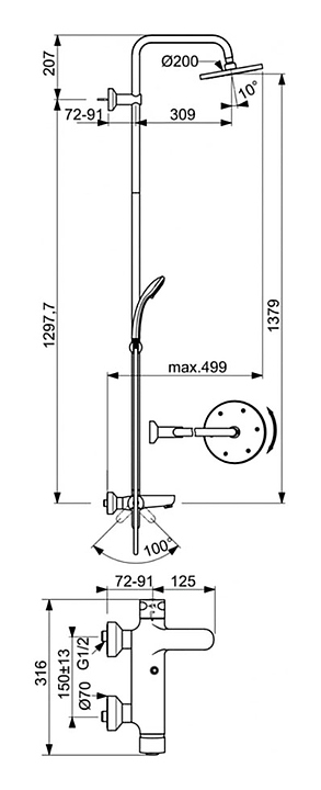 Стойка душевая Ideal Standard IDEALRAIN ECO B1377AA