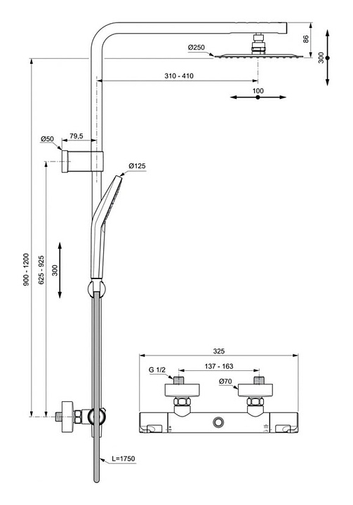 Стойка душевая Ideal Standard CERATHERM T50 A7704AA