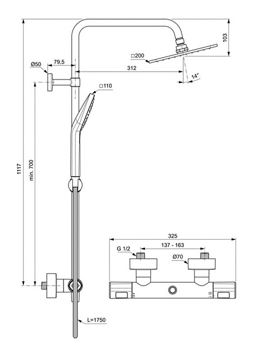 Стойка душевая Ideal Standard CERATHERM T100 A7240AA
