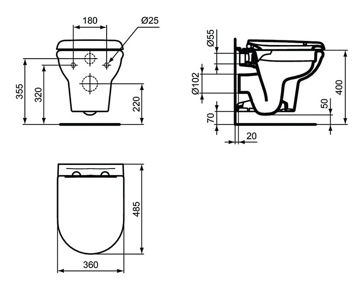 Унитаз Ideal Standard Exacto Rimless UV09001 выполнен в современном стиле. Благодаря подвесной конструкции унитаз не занимает много места в помещении, а свободное пространство под чашей делает уборку в ванной комнате гораздо легче. Безободковое исполнение позволяет предотвратить скопление бактерий и грязи на внутренней поверхности чаши и обеспечивает ее чистоту и гигиеничность использования. Изделие выполнено из санфарфора, который обладает повышенной прочностью, устойчив к негативным внешним факторам, а также способен долгое время сохранять идеальную белизну, сиденье с крышкой - из полипропилена, устойчивого к моющим и дезинфицирующим средствам. В комплект поставки входит сиденье с крышкой UV09001. Особенности: