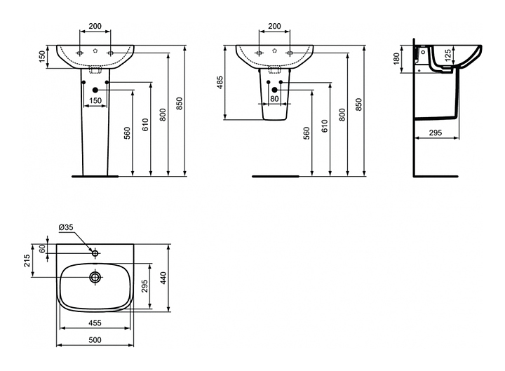 Пьедестал Ideal Standard IS i.life A T471201 предназначен для раковин шириной 50 см, 55 см, 60 см и 65 см. Модель монтируется на расстоянии от стены. Изделие выполнено из санфарфора, который обладает повышенной прочностью и устойчивостью к негативным внешним факторам, а также способен долгое время сохранять идеальную белизну. Характеристики: